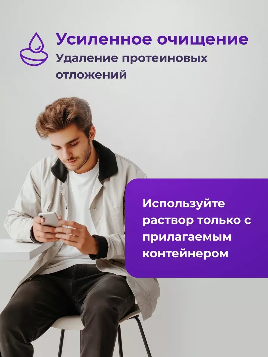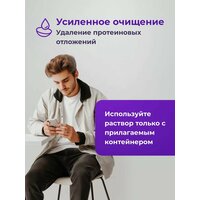Обратите внимание, что для достижения максимального эффекта очистки и дезинфекции линз, необходимо строго следовать инструкциям производителя и использовать только специальные контейнеры, идущие в комплекте.
