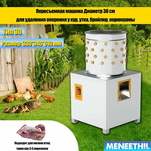 Наша перосъемная машина диаметром 30 см - это идеальное решение для удаления оперения у кур и больших перепелов. Это надежный инструмент, который поможет вам справиться с задачей быстро и эффективно.