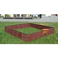 Песочница изготовлена из песчанополимерного композита (ППК), который представляет собой смесь переработанного пластика с песком и пигментом. Этот материал обеспечивает высокую прочность и долговечность, а также устойчивость к воздействию погодных условий. Срок службы песочницы составляет 50 лет, что делает ее надежным и долгосрочным решением для вашего сада.