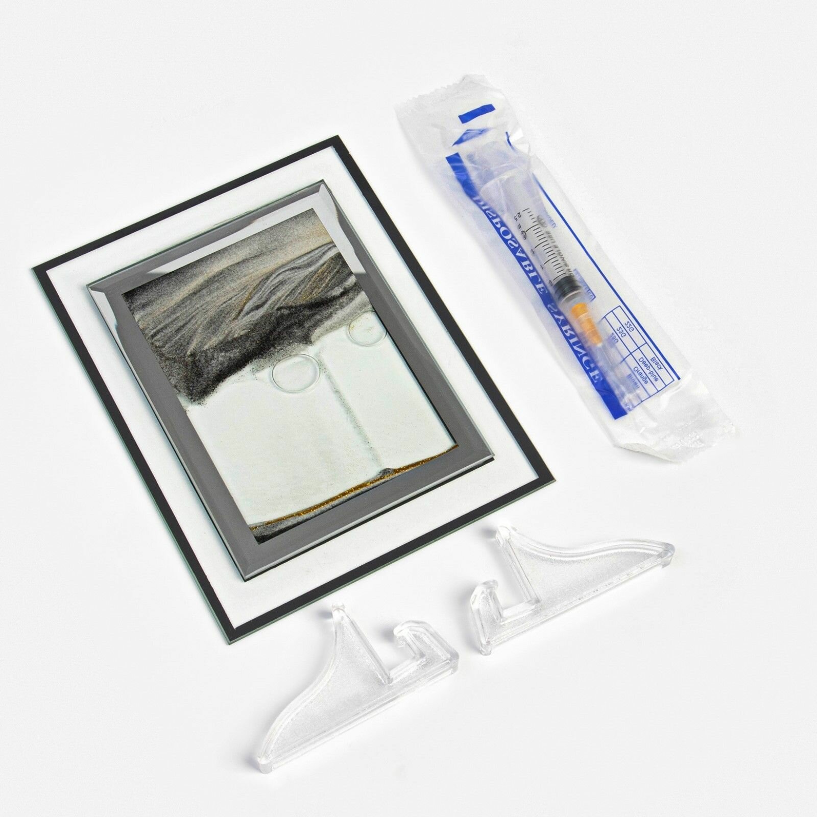 Вы воздействуете одним прикосновением, когда рамка переворачивается, песок начинает произвольно струиться вниз, огибая пузырьки жидкости, образуя удивительной красоты пейзажи. Наблюдение за этим процессом позволяет человеку расслабиться, отдохнуть, успокоить нервы.