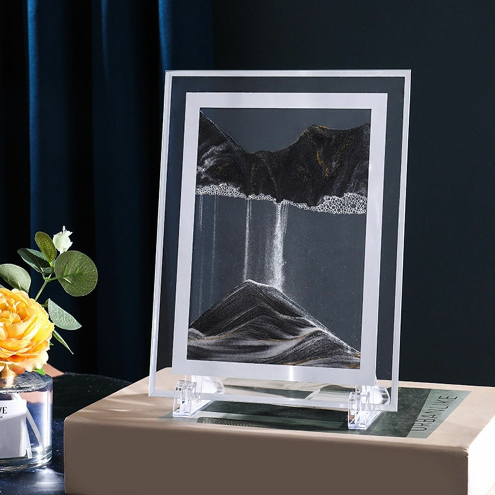 Картина с пересыпающимся песком создает спокойную и умиротворяющую атмосферу, которая помогает расслабиться наблюдая за движением песка и каплями воды.