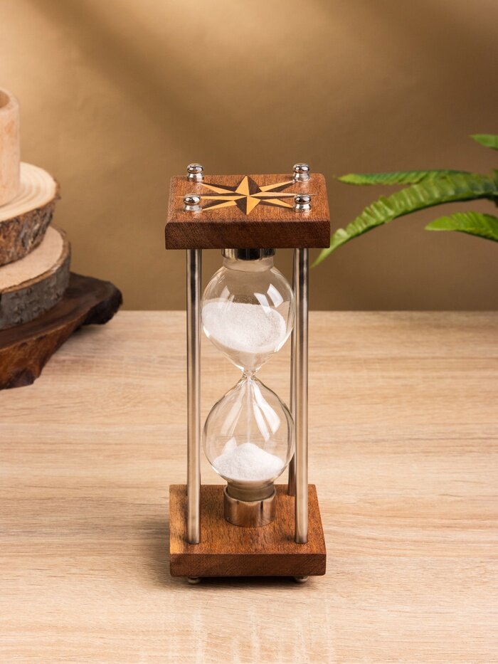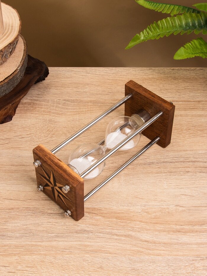 Песочные часы «Стороны света» представляют собой уникальное сочетание дизайна и функциональности. Они станут отличным дополнением к интерьеру вашего дома или офиса, а также помогут вам отслеживать время с точностью до минуты.