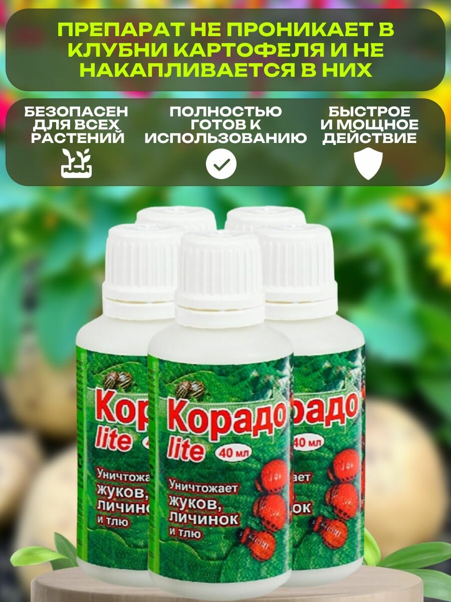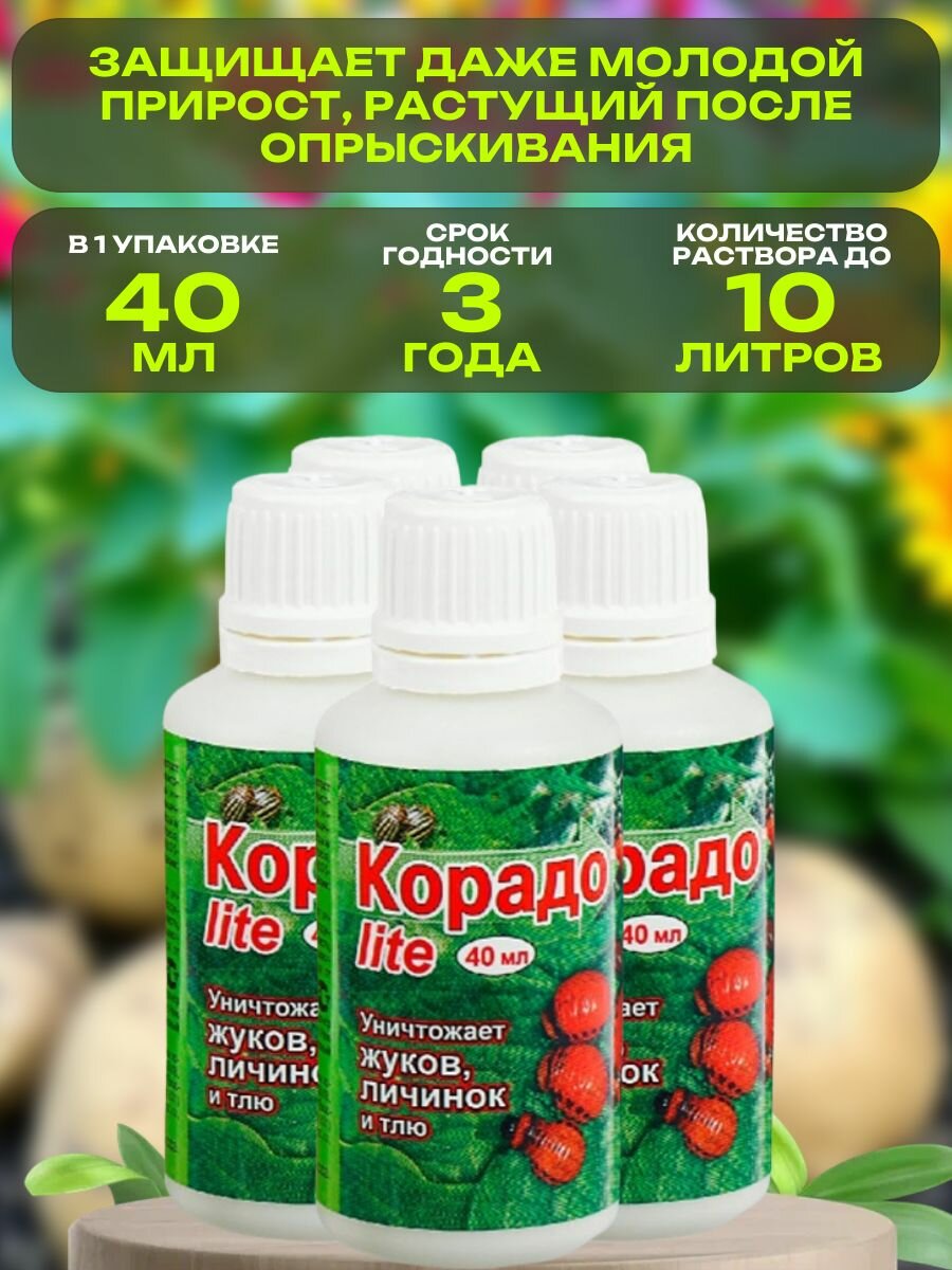 Пестицид Корадо Лайт, 5 упаковок — ампулы по 40 мл: уничтожает колорадского жука, тлю и защищает от них на 3-4 недели: сравнение цен, характеристики, фото, актуальное наличие и цены.