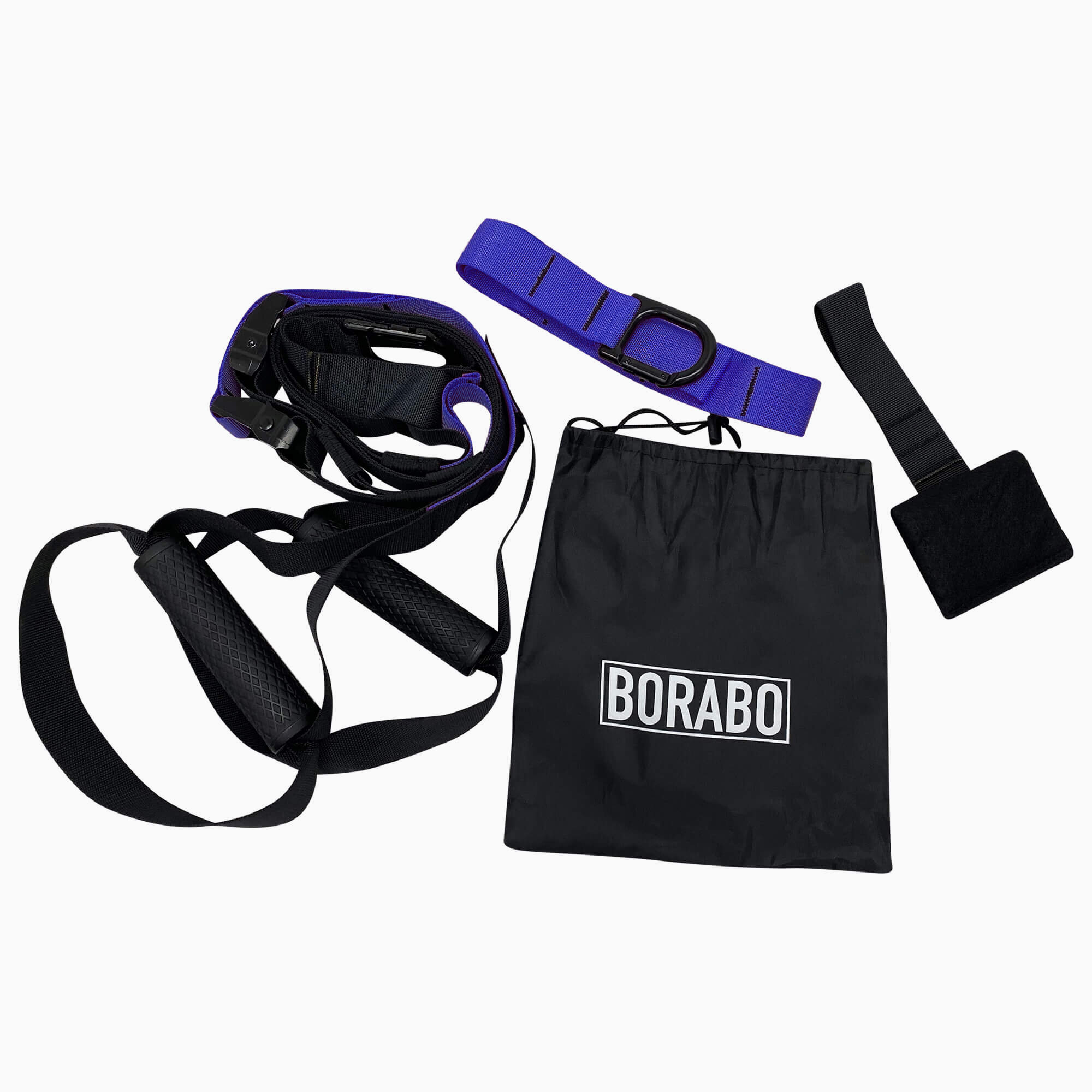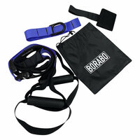 Тренажер состоит из подвесного крепления с удлинителем и зажима для крепления к двери. Резиновые рукояти с текстурной поверхностью исключают скольжение рук и обеспечивают плотное сцепление даже без перчаток. Зацепы для ног разнообразят динамическую планку и усложнят классические махи ногами. Плотные стропы из материала повышенной прочности обеспечивают безопасность и комфорт. В петлях предусмотрен механизм регулировки длины строп для разнообразия упражнений и коррекции тренажера под рост. Прочный и долговечный материал, резиновые рукояти препятствуют скольжению.