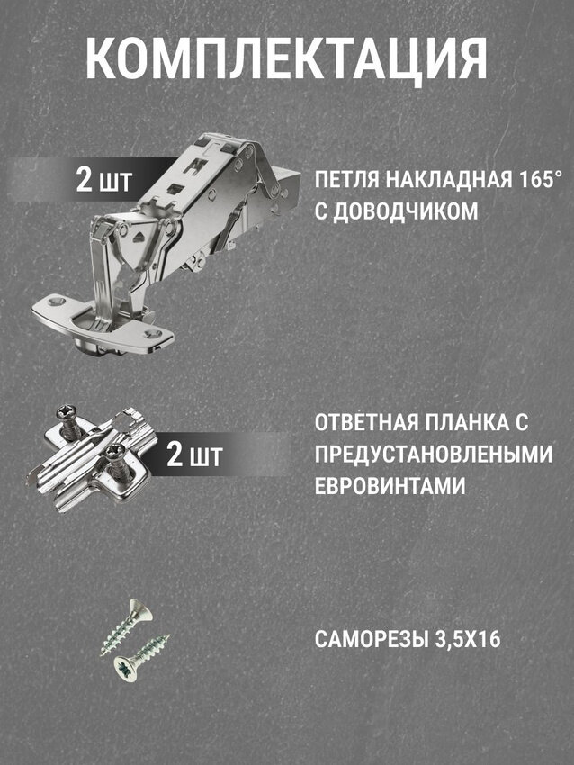 Петли мебельные Hettich Sensys накладные с доводчиком 8657I, 165 градусов, комплект 2 штуки: сравнение цен, характеристики, фото, актуальное наличие и цены.