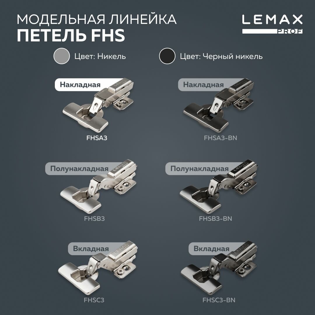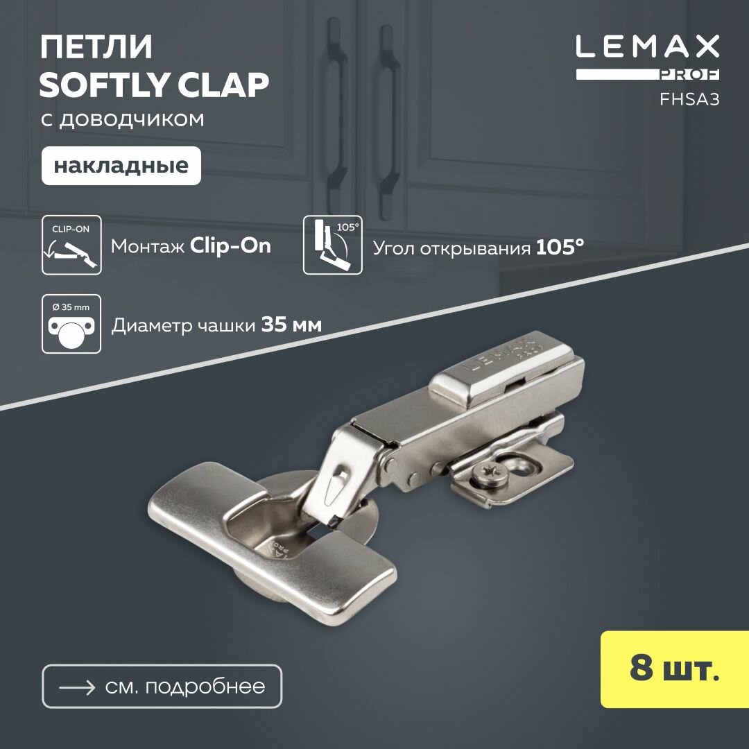 Петли мебельные накладные Lemax Prof с доводчиком / Комплект фурнитуры для корпусной мебели 8 шт. / 105 градусов 3D-регулировка Clip-On: сравнение цен, характеристики, фото, актуальное наличие и цены.