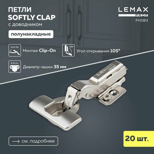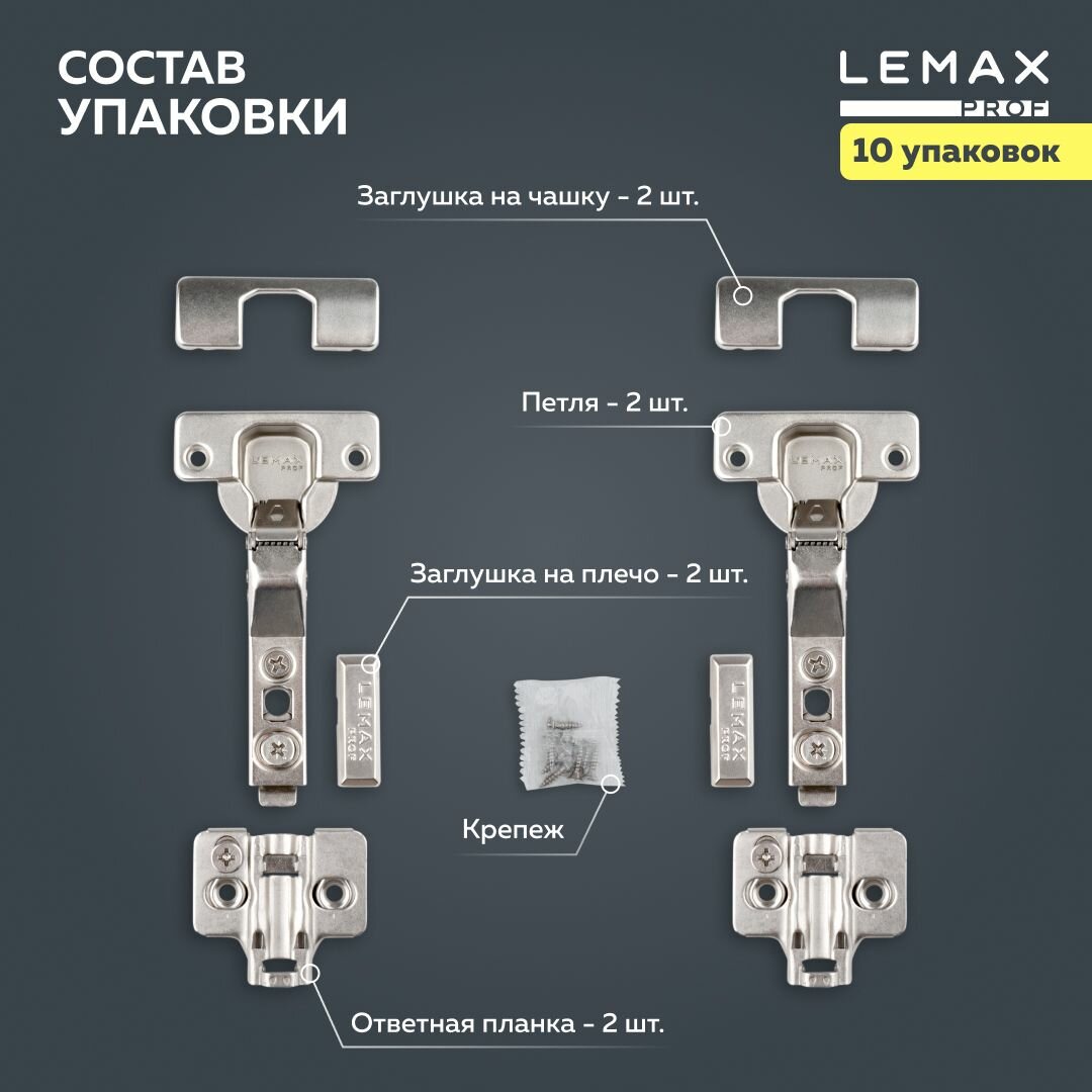 Комплект мебельных петель LEMAX PROF FHSB3, 20 шт. Материал изготовления: сталь. Диаметр чашки 35 мм.
