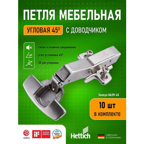 Петли мебельные с доводчиком угловые 45 градусов HETTICH SENSYS 8639I Clip-on – это идеальное решение для создания функциональных и стильных интерьеров. Изготовленные в Германии, эти петли станут надежным элементом вашей мебели, обеспечивая плавное закрытие дверей и оптимальный комфорт в использовании.