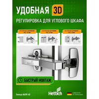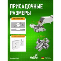 Петли мебельные с доводчиком угловые 45 градусов HETTICH SENSYS 8639I Clip-on – это идеальное решение для создания функциональных и стильных интерьеров. Изготовленные в Германии, эти петли станут надежным элементом вашей мебели, обеспечивая плавное закрытие дверей и оптимальный комфорт в использовании.