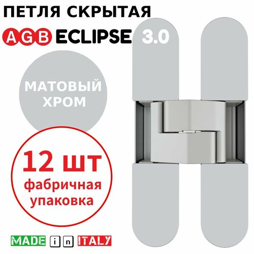 Купить Петли скрытые AGB Eclipse 3.0 (матовый хром) Е30200.02.34 + накладки Е30200.12.34 (12шт) с доставкой по всей России.