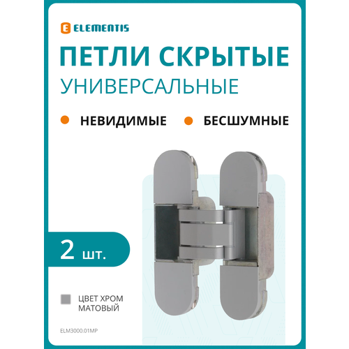 Петли скрытые ELEMENTIS, универсальные, 3D, 110×30 мм, 40 кг, хром матовый, комплект из 2 шт.: сравнение цен, характеристики, фото, актуальное наличие и цены.