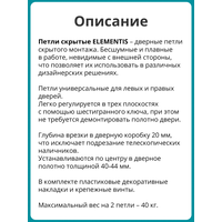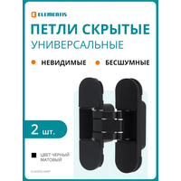 Петли скрытые ELEMENTIS, универсальные, 3D, с накладками, 110×30 мм, 40 кг, черный матовый, комплект 2 шт.: сравнение цен, характеристики, фото, актуальное наличие и цены.