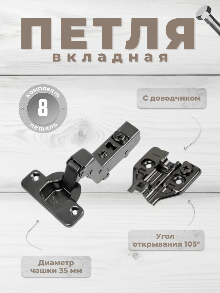 Петля мебельная BOYARD 3D четырехшарнирная clip-on NEO, черный никель, комплект 8 шт, петли вкладные с доводчиком 105 град. для кухонных гарнитуров, мебели, фасадов: сравнение цен, характеристики, фото, актуальное наличие и цены.
