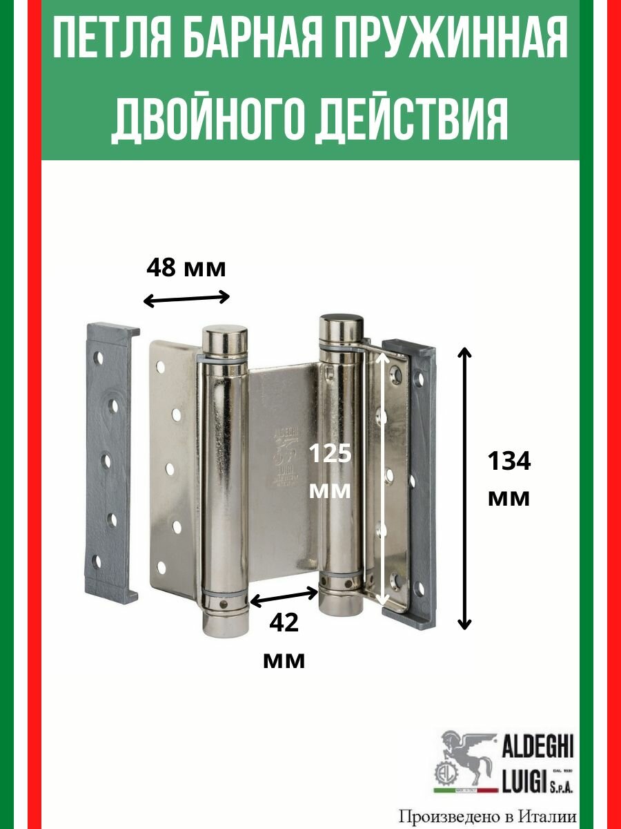 Барная пружинная петля двойного действия ALDEGHI LUIGI SPA 125x48x42 мм, никель, к-т 2 шт. + ключ 101AN125B2_U2