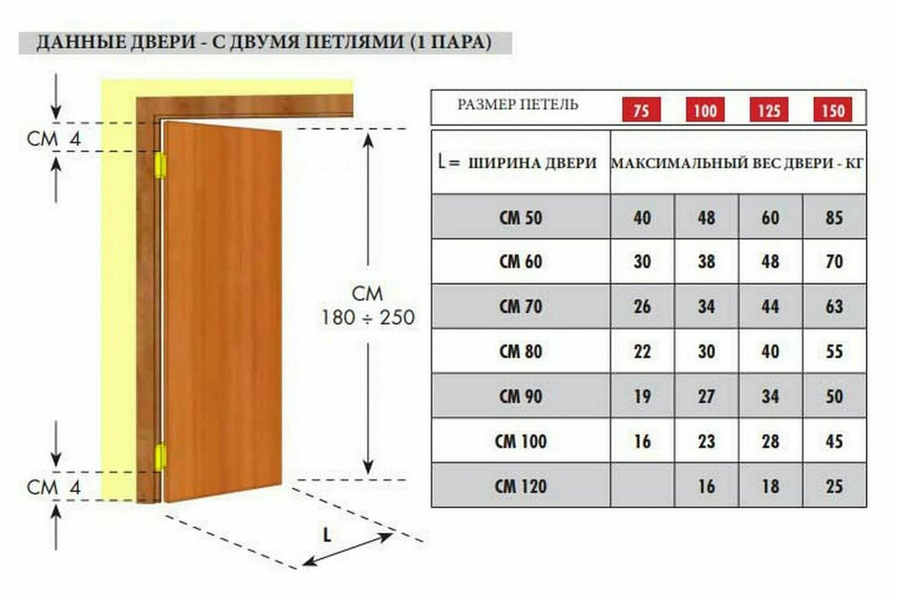 - Петли используются для открывания двери в обе стороны на 90 градусов.