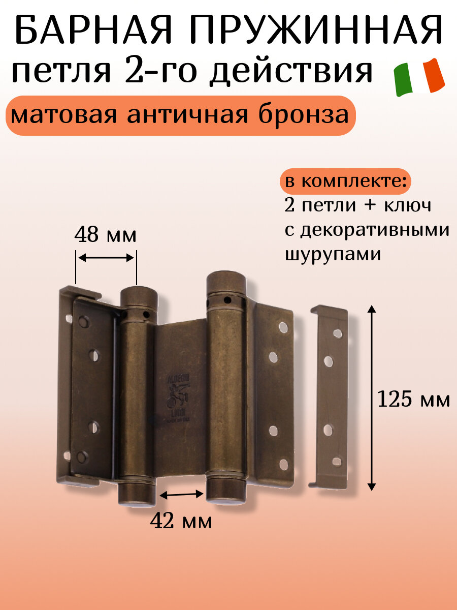 Петля барная ALDEGHI LUIGI, 101, оцинк. сталь, цвет: антик бронза, 125х48х42 мм, 2 шт+монтажн. набор, без доводчика: сравнение цен, характеристики, фото, актуальное наличие и цены.
