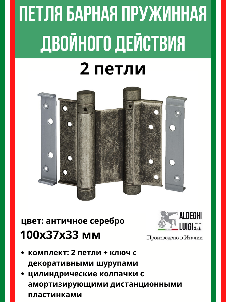 Петля барная, 2-го действ. ALDEGHI LUIGI, 101, 100х37х33 мм, цвет: античн. серебро, 2 шт+монтажн. набор: сравнение цен, характеристики, фото, актуальное наличие и цены.