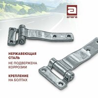 Петля для боковой двери автомобильного грузового фургона. Изготовлена из нержавеющей стали. Петля может быть закреплена на болтах к порталу боковой двери, также может быть приварена. Отличный и недорогой вариант дверной петли для небольших дверей автомобильных фургонов, ящиков, боксов. Применяется при производстве промтоварных кузовов, автомобилей дорожных служб, спецмашин, прицепов, фудтраков.