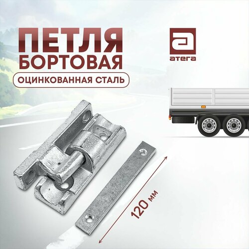 Комплект состоит из трёх частей - две части петли и опорная пластина. Две части петли обеспечивают в сборе надежное соединение. Петля для борта изготовлена из оцинкованной стали, устойчива к коррозии и атмосферным осадкам.