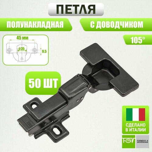 Петли мебельные полунакладные с доводчиком, черного цвета, полный комплект.