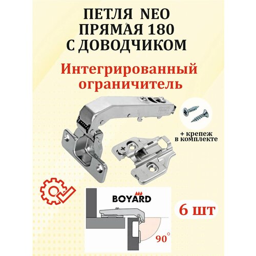 Купить Петля мебельная 180 градусов для прямых дверей Boyard NEO 3D с доводчиком 6 шт. с доставкой по всей России. Петля мебельная 180 градусов для прямых дверей Boyard NEO 3D с доводчиком 6 шт.: сравнение цен, характеристики, фото, актуальное наличие и цены.