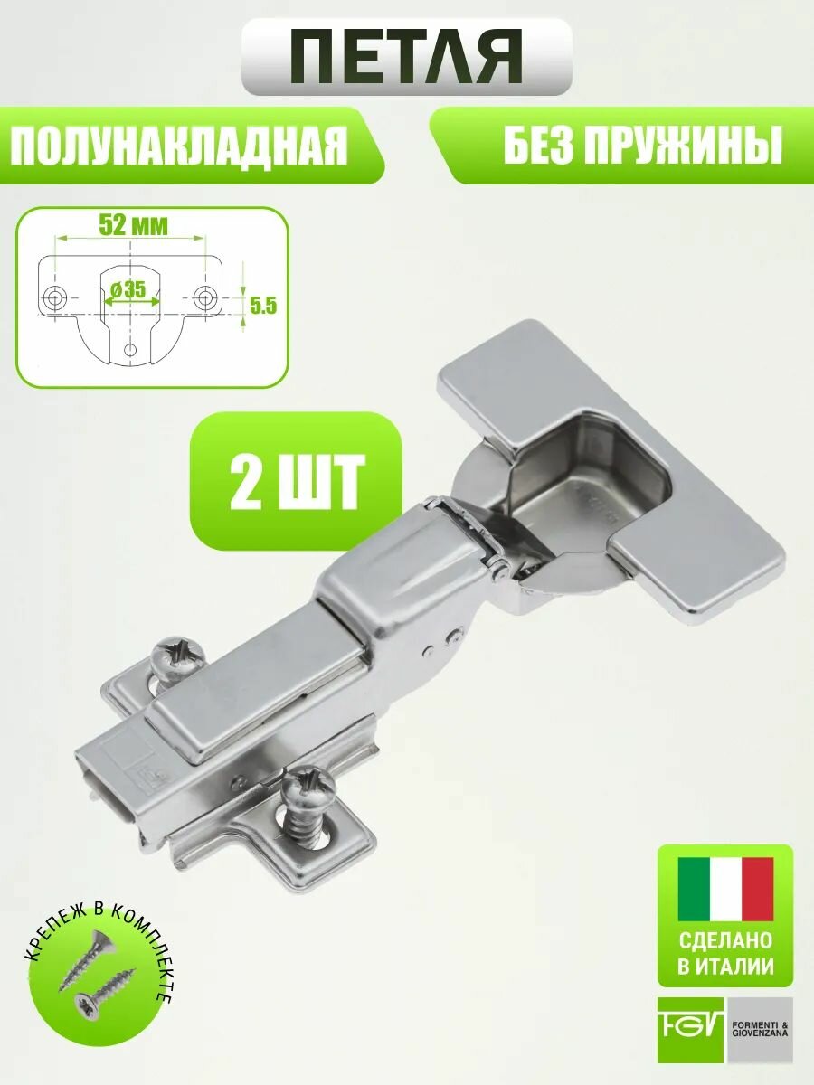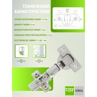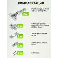 Петли мебельные полунакладные без пружины для системы TIP-ON - открывание фасада от нажатия (Push to open), без использования ручек. Ответная планка с двумя видами крепления, в комплекте и евровинты и саморезы. Петля подходит для различных типов мебели, включая шкафы, комоды, кухонные гарнитуры.