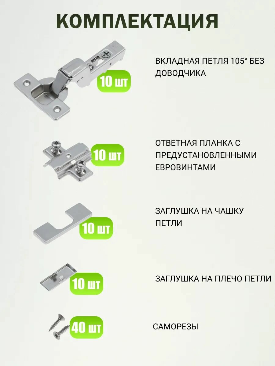 Петля мебельная без пружины FGV OMNIA L, вкладная, без доводчика под TIP ON. Открывание 105 градусов. Комплект из 10 шт для кухонного фасада, шкафа и другой мебели: сравнение цен, характеристики, фото, актуальное наличие и цены.
