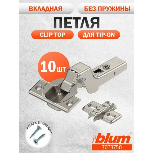 Петля мебельная Blum CLIP top 110 градусов без пружины для системы TIP-ON - открывание фасада от нажатия (Push to open), без использования ручек, в комплекте с ответной планкой 173L6100 с креплением под саморез. Внутренние петли мебельные с углом открывания 110 градусов подходят для всех типов мебели, включая шкафы, комоды, тумбы, кухонные гарнитуры и другуие изделия. Петля CLIP top для фасадов без ручек отличается удобством регулировки и монтажа, надежной работой и привлекательным дизайном. Рассчитана на весь срок службы мебели, что составляет около 20 лет или 200 000 циклов открывания / закрывания фасада. Широкий ассортимент петель без пружины под толкатель типон позволяет подобрать подходящее решение практически для любого варианта наложения, будь то вкладной фасад, накладной или полунакладной. Петли для мебели без ручек удобны и экономичны в использовании, потому что практически не требуют обслуживания и замены. Преимущества петли CLIP top: возможна установка TIP-ON для фасадов без ручек - открывание от нажатия, удобная регулировка по глубине с помощью механизма шнек, дверь устанавливается и снимается с корпуса без инструмента, испытанная и удобная 3 х мерная регулировка для идеального рисунка фасадов, качество на весь срок службы вашей мебели. Основные характеристики петли 70T3750: угол открывания 110°, угол установки 90°, диаметр чашки 35 мм, глубина фрезеровки чашки 13 мм, межосевое расстояние (расстояние между центрами отверстий под крепеж) 45 мм, смещение отверстий под крепеж (относительно центра чашки петли) 9,5 мм, расстояние до чашки от 3 до 7 мм, толщина фасада от 16 до 24 мм. Основные характеристики ответной планки 173L6100: форма ответной планки - крест, подъем 0 мм, расстояние между позициями крепления 32 мм, расстояние от переднего края каркаса до 1 позиции крепления 37 мм + толщина фасада + 1,5 мм, ответная планка регулируется по высоте продольным пазом на +/- 3 мм. Выбирая петли Блюм для кухни без ручек, вы получаете не только функциональность и качество, но и стильный дизайн, который вписывается в любой интерьер.