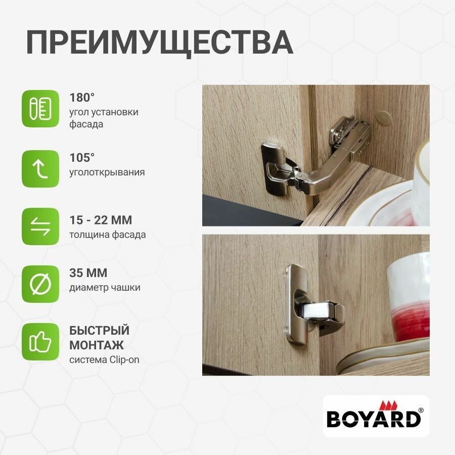 Модель входит в линейку современных петель NEO, которая создана в соответствии с международными стандартами для производителей качественной мебели сегментов «средний» и «средний+».