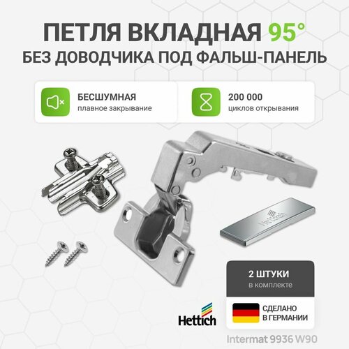 Петля HETTICH Intermat 9936 (для фальш панели), 95 градусов без доводчика, быстрый монтаж clip-on, с монтажной планкой с евровинтами + заглушка на плечо