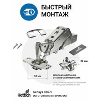 Купить Петля мебельная накладная для широкого угла открывания HETTICH SENSYS 8657i с доводчиком и крепежной фурнитурой / угол открывания 165 градусов 2 шт с доставкой по всей России.