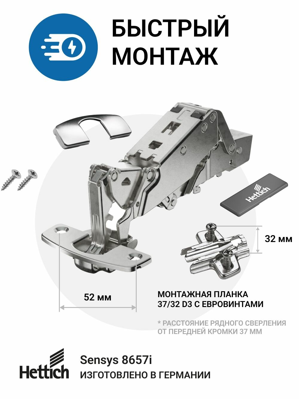 Петля мебельная накладная для широкого угла открывания HETTICH SENSYS 8657i с доводчиком и крепежной фурнитурой / угол открывания 165 градусов 2 шт: сравнение цен, характеристики, фото, актуальное наличие и цены.
