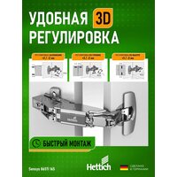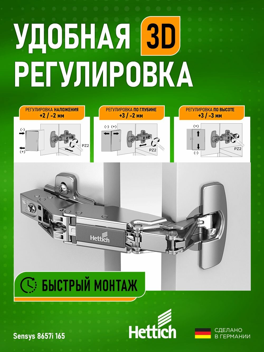 Петля мебельная накладная для широкого угла открывания HETTICH SENSYS 8657i с доводчиком и крепежной фурнитурой / угол открывания 165 градусов, 2шт: сравнение цен, характеристики, фото, актуальное наличие и цены.