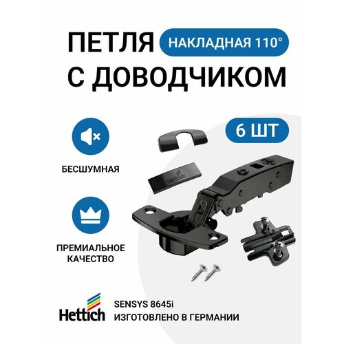 | Подробная комплектация | петля накладная с доводчиком; монтажные планки с евровинтами; заглушки на плечо петли с логотипом и на чашку петли; саморезы для крепления чашки петли |
