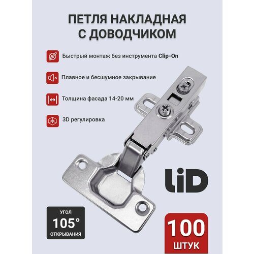 Купить Петля мебельная накладная с доводчиком LID, быстрая установка clip-on, 100 шт с доставкой по всей России.