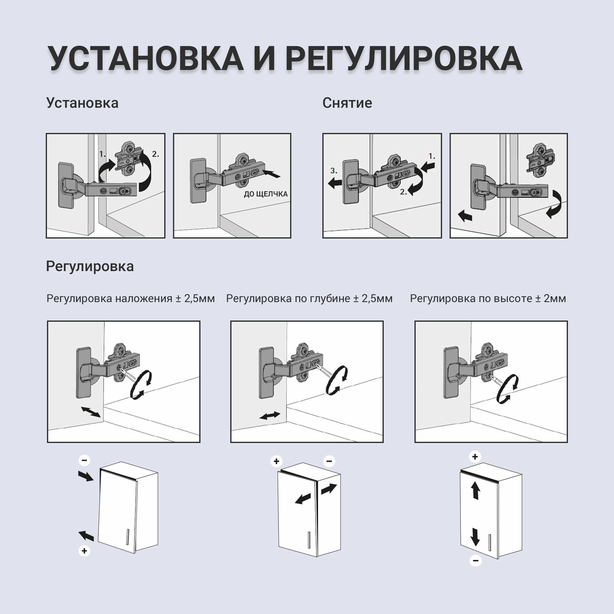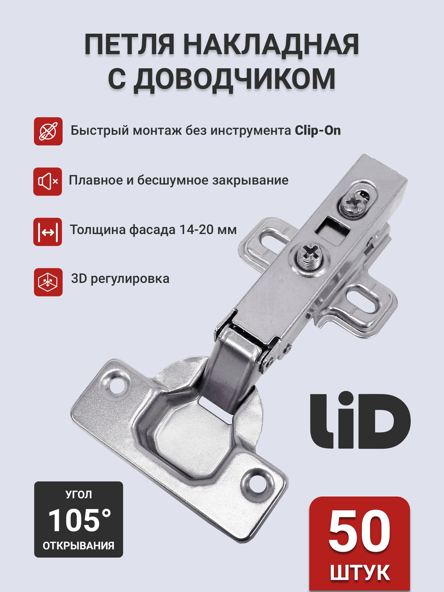 Петля мебельная накладная с доводчиком LID, быстрая установка clip-on, 50 шт: сравнение цен, характеристики, фото, актуальное наличие и цены.