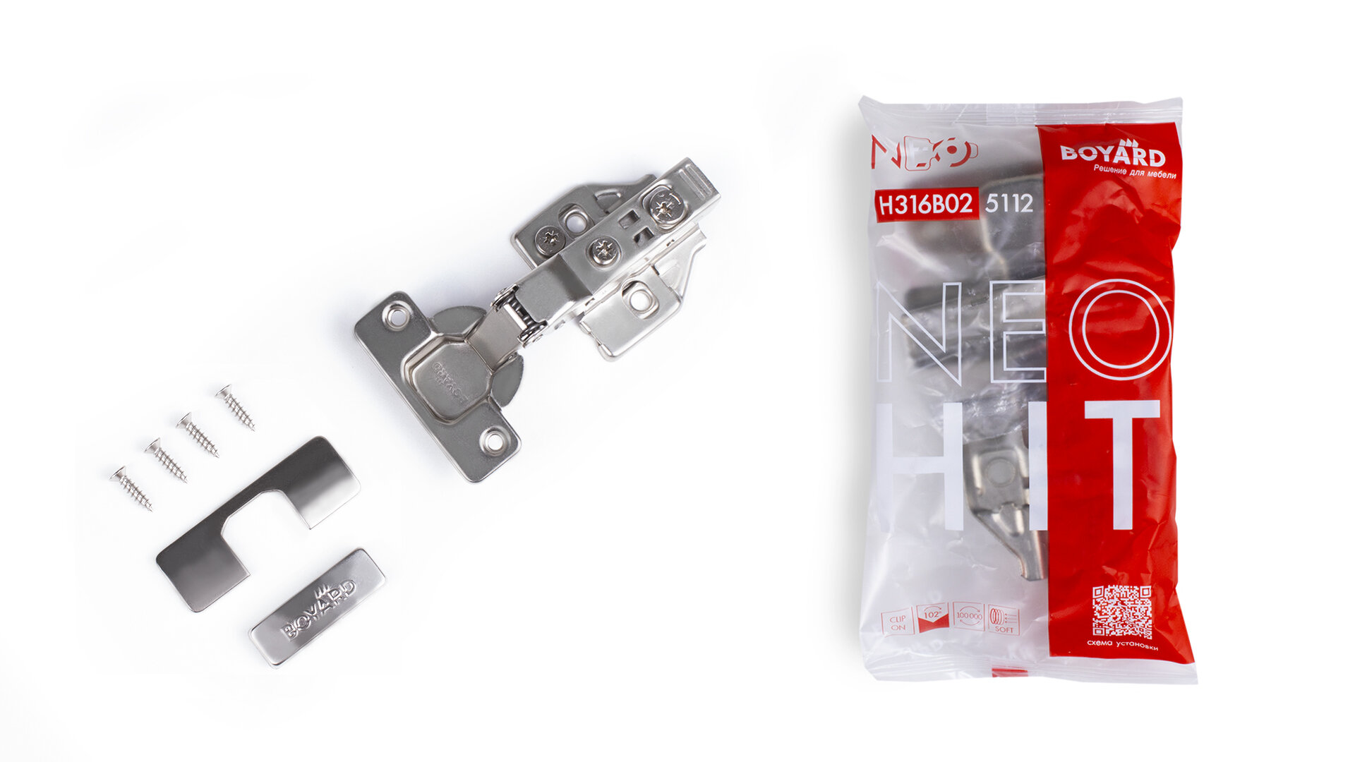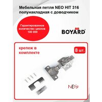 Петля мебельная с доводчиком BOYARD NEO HIT H316B02/5112 полунакладная угол открывания 102 градусов с эксцентриком доводчиком и крепежной фурнитурой 8 шт: сравнение цен, характеристики, фото, актуальное наличие и цены.