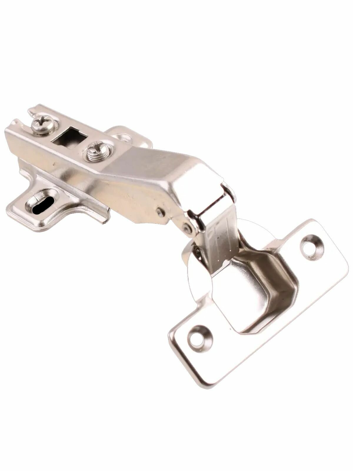 Этот стальной соединительный механизм отличается большим изгибом «в плече», благодаря которому осуществляется вынос вкладной дверцы при открывании за приделы корпуса.