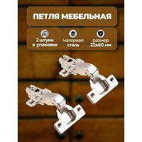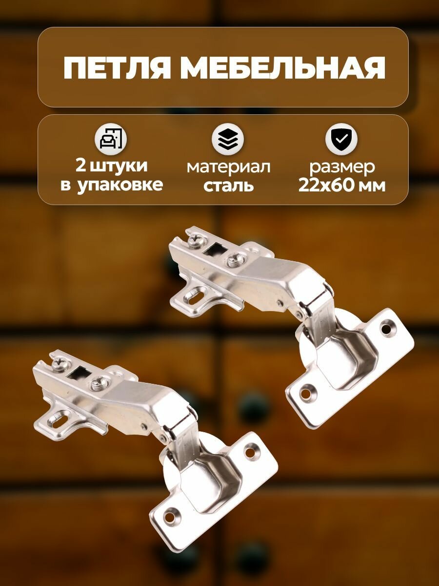 Петля мебельная вкладная, 22х60 мм, (комплект 2 шт.), стальной механизм крепления створок тумбочек, гостиных, прихожих, гардеробных и кухонных гарнитуров, цвет серебристый металл.