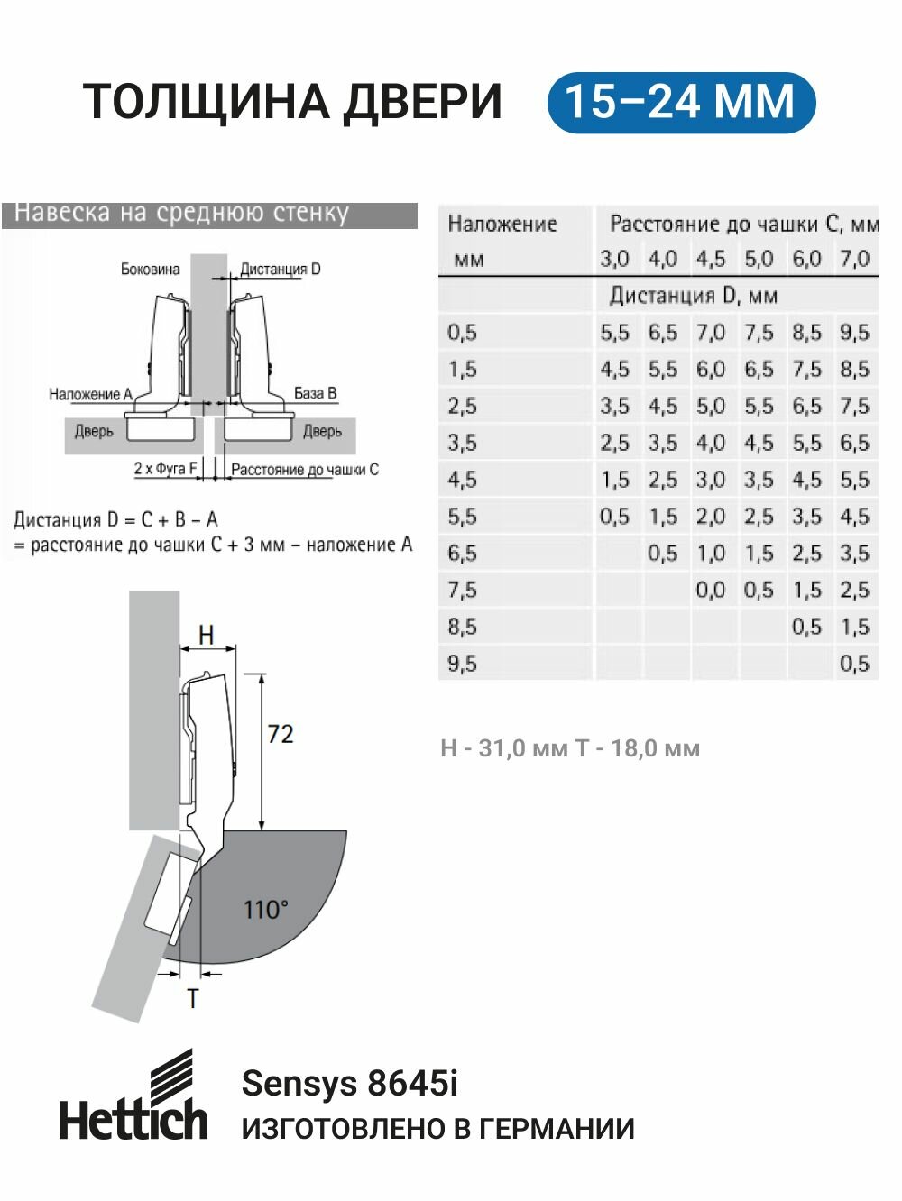 Купить Петля мебельная вкладная HETTICH SENSYS с доводчиком с крепежной фурнитурой 110 градусов 2 шт с доставкой по всей России.