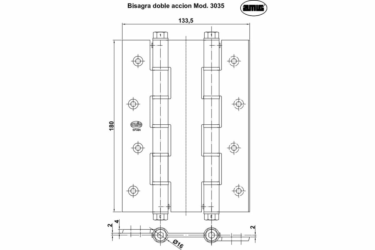 Петля пружинная двойного действия с квадратными углами производства AMIG, Испания.