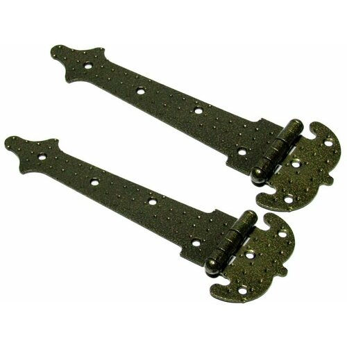 - Широкий ассортимент изделий позволяет декорировать дом, ворота, калитку и мебель в едином стиле. Саморезы в цвет изделия входят в комплект. Декоративные петли-стрелы представлены пятью вариантами размеров от 150 до 350 мм, двумя вариантами качественного полимерного покрытия - чёрные и бронзовые, а также в оцинкованном виде в размере 150 мм. Единая линия дизайна петель-стрел "Под старину" Noez поможет украсить Вам в Вашем загородном доме деревянные ворота, ставни и другие распашные конструкции. Наши декоративные петли-стрелы сделаны из стали толщиной от 2 мм, короткое крыло петель-стрел имеет 3 отверстия для крепления, крылья-стрелы от 3 до 5 отверстий в зависимости от размеров. Поэтому Вы можете быть уверены в их жёсткости и прочности при эксплуатации. Петля для ворот состоит из двух пластин, соединенных между собой подвижной перемычкой. Внутри нее фиксируется металлический штырь, обеспечивающий всей конструкции нужный уровень подвижности при открывании и закрывании. Компания NOEZ производит петли для деревянных ворот, а также конструкций, созданных из других материалов. Продукцию отличает несколько особенностей: