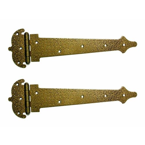 - Красивое внешнее оформление. Стрельчатые петли для ворот создаются «под старину». Они красиво смотрятся в сочетании с деревом, их можно ставить даже с лицевой стороны. Несмотря на изящество, элементы прочные и выдерживают сильные внешние нагрузки