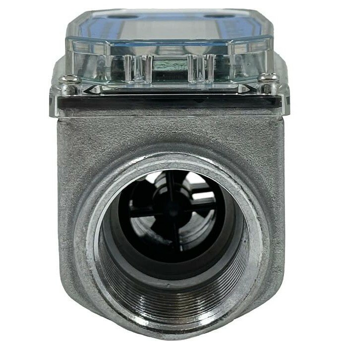Внутренний механизм турбинной камеры надежно защищен корпусом из прочного алюминия. Скорость протока составляет 20-120 л/мин, а погрешность равна ±2 %.