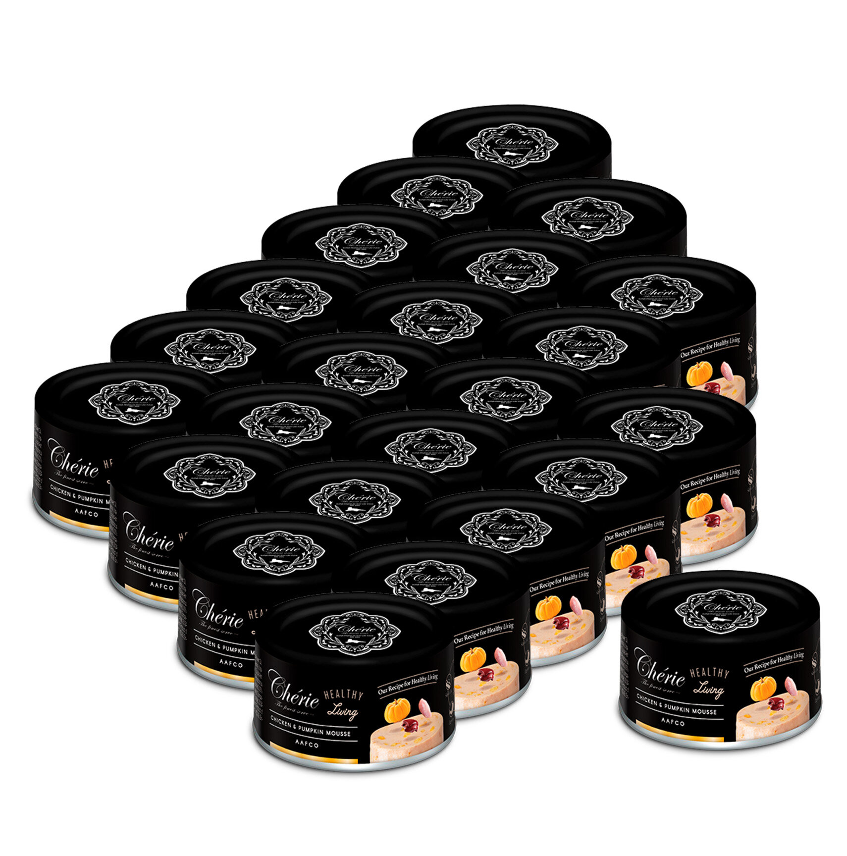 Pettric Cherie влажный корм для кошек, мусс из курицы с тыквой (24шт в уп) 80 гр. Pettric - влажные корма для кошек супер премиум класса, производство этого корма продолжается уже более сорока лет компанией Pettric Pet Food Co в Таиланде.