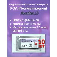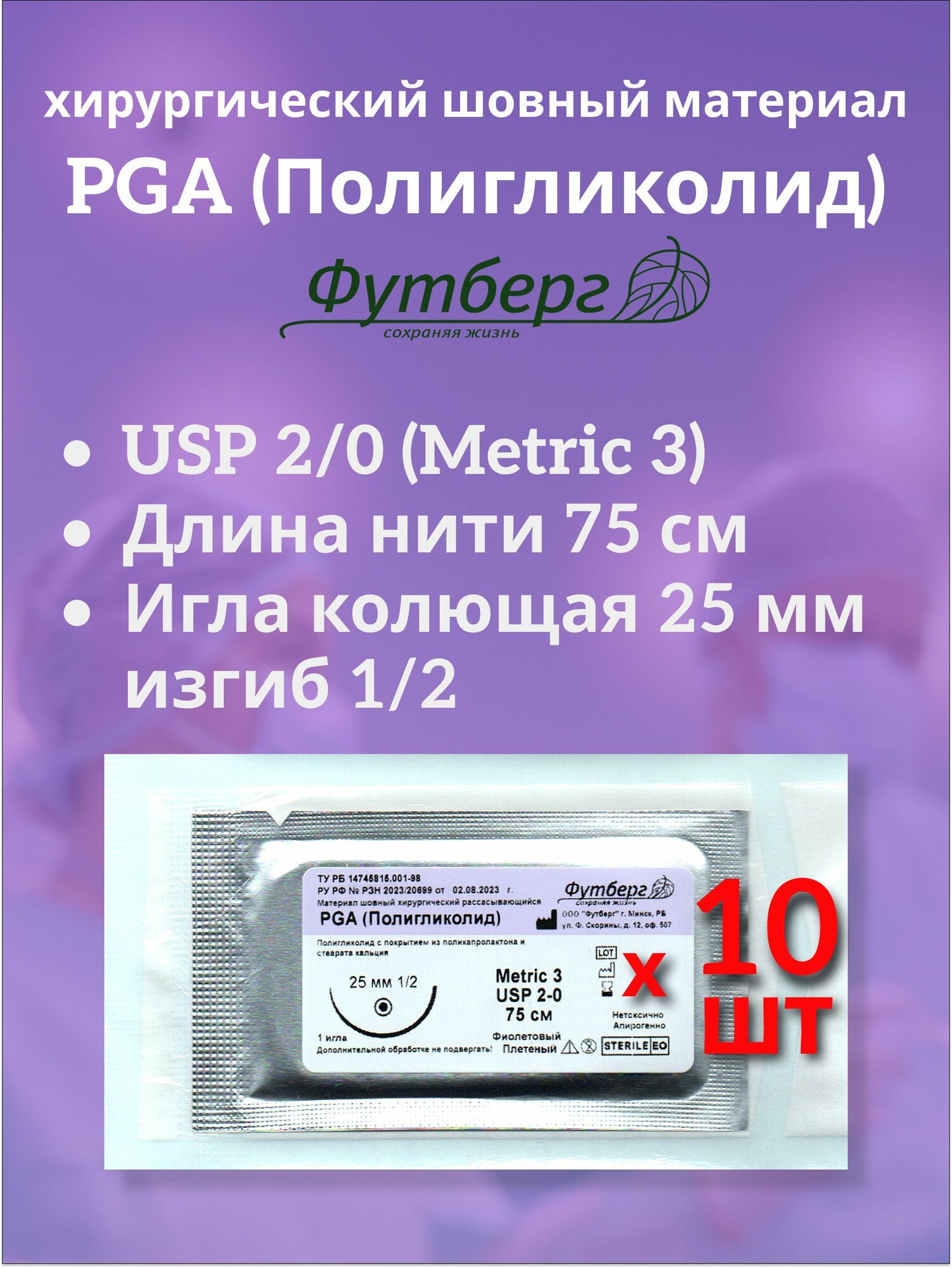 PGA (Полигликолид) USP 2/0 (M3), длина 75см, игла колющая 25мм, изгиб 1/2, (10 штук) Шовный хирургический материал Футберг: сравнение цен, характеристики, фото, актуальное наличие и цены.