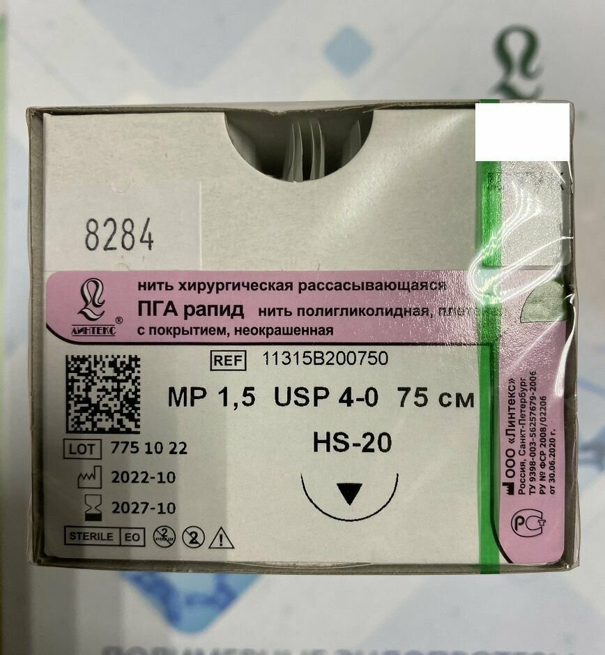 Продукция представлена официальным представителем завода-изготовителя Импортные эквиваленты: VICRYL RAPIDE/викрил рапид (Ethicon /Johnson&Johnson/), Safil Quick+/Сафил Квик+ (B.Braun), PGA Resoquick/ПГА Ресоквик (Resorba), SURGICRYL RAPID/сургикрил рапид (SMI AG), Atramat PGA-RAPID/ Атрамат пга-рапид (Atramat). Описание: Медицинское изделие ПГА рапид – шовный хирургический стерильный быстрорассасывающийся материал, плетеный из синтетических нитей на основе полигликолевой кислоты (полигидроксиацетиловой - ПГА), с пленочным покрытием из рассасывающегося полимера (поликапролактона и стеарата кальция). Преимущества: Нити ПГА рапид отличаются высокой прочностью и очень хорошей гибкостью, удобны в манипуляциях, надежно держат узел. Благодаря ускоренному гидролизу нити быстро рассасываются, исчезая из области операционной раны и не создавая препятствий для её заживления. Сроки рассасывания: Нити ПГА рапид в живых тканях подвергаются гидролитическому распаду на воду и углекислый газ. Через 7 суток нити теряют до 50% прочности, а по истечении 35-40 суток полностью рассасываются. В тканях со слабым кровоснабжением рассасывание может быть замедленным. Область применения: Хирургия, пластическая хирургия, торакальная хирургия, онкология, офтальмология, урология, акушерство и гинекология, стоматология. Показания: Нити ПГА рапид рекомендованы для аппроксимации мягких тканей в случаях, когда 7 суток достаточно для адекватного заживления раны и (или) когда пребывание шва в тканях более 35-40 суток может неблагоприятно отразиться на процессах регенерации тканей. Противопоказания: Нити ПГА рапид не рекомендованы для длительной аппроксимации тканей, для использования в сердечно-сосудистой хирургии и нейрохирургии. Применение: Нити ПГА рапид применяются для ушивания всех тканей, кроме находящихся под натяжением или длительно незаживающих. Нити полигликолидные быстрорассасывающиеся отличаются высокой прочностью и очень хорошей гибкостью, легко вяжутся хирургическими узлами как с использованием стандартной мануальной техники завязывания, так и с помощью инструментов. Для обеспечения надежности шва необходимо применение тройного хирургического узла с достаточным усилием при затягивании. Стерилизация: Газовая – оксид этилена (ЕО). В случае повреждения стерильной упаковки медицинское изделие подлежит утилизации. Условия транспортирования: Всеми видами крытых транспортных средств в соответствии с правилами, действующими на каждом виде транспорта, при температуре от минус 50 ºС до плюс 50 ºС. Условия хранения: При температуре от плюс 5 ºС до плюс 40 ºС в месте, защищенном от влаги и прямых солнечных лучей. Не размещать вблизи источников тепла. Срок годности: При соблюдении условий хранения в упаковке производителя – 5 лет. Производитель: ООО «Линтекс», Россия. Регистрационное удостоверение медицинского изделия: № ФСР 2008/02206 от 30.06.2020г.