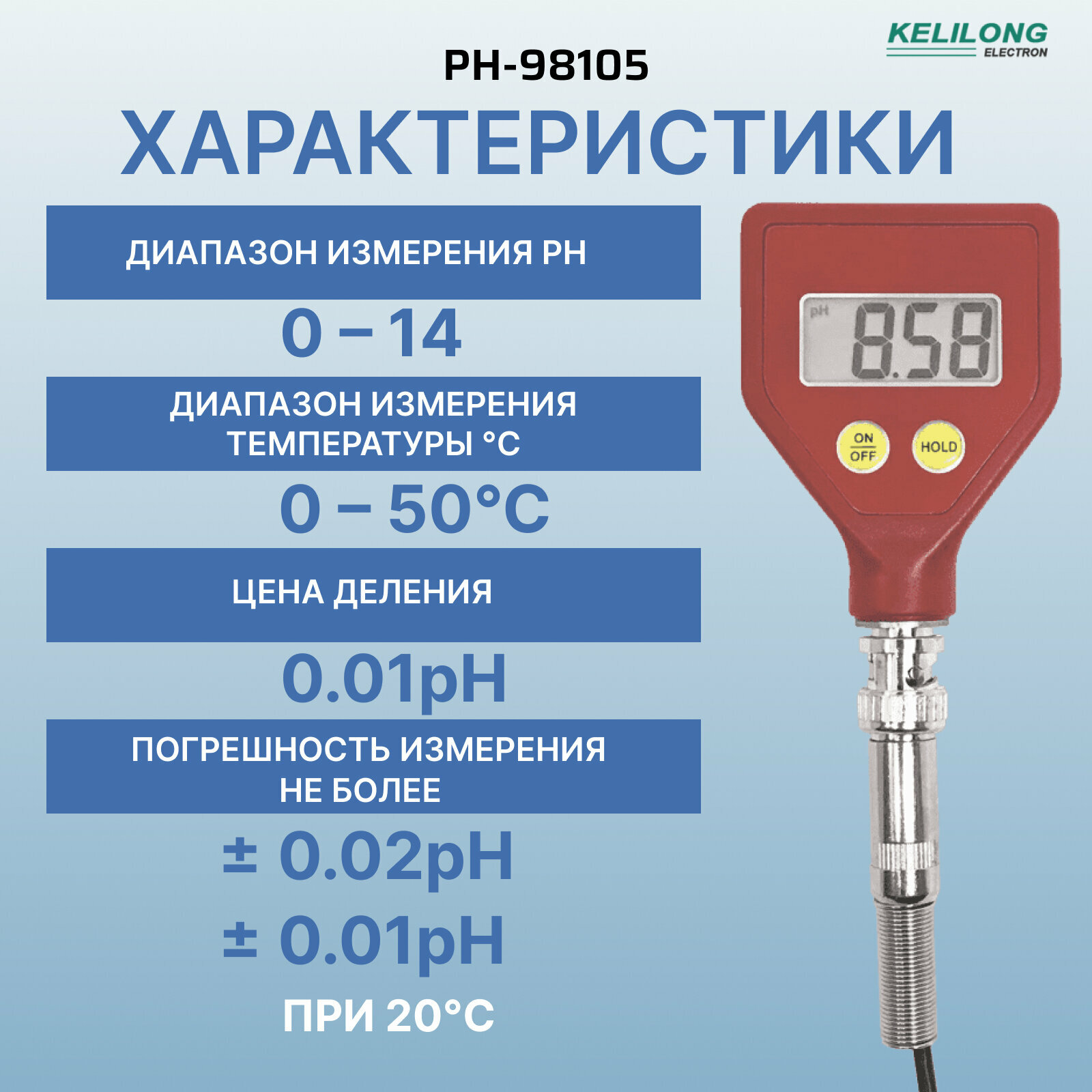 Купить Ph метр для воды и бассейна с погружным электродом Kelilong PH-98105 с доставкой по всей России.
