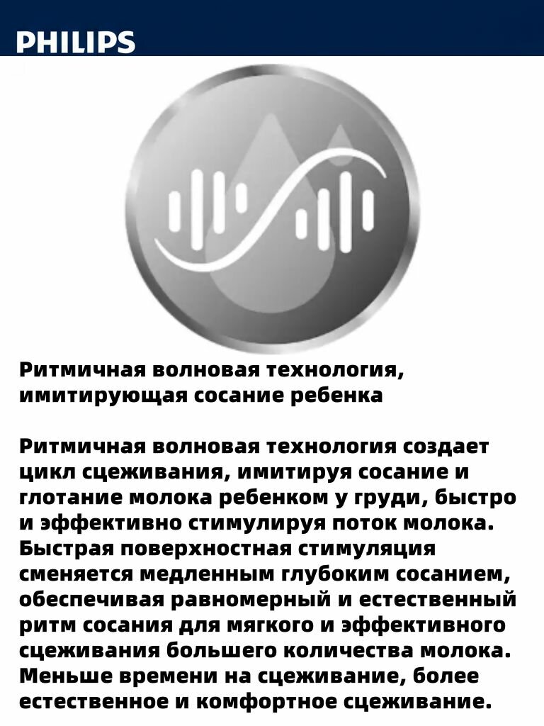 · Технология ритмичной скорости волны имитирует цикл грудного вскармливания вашего ребенка и естественный цикл сцеживания, обеспечивая быстрый и эффективный поток молока.
