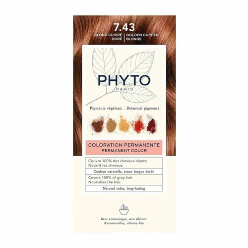 Крем-краска для волос тон 7.43 (золотисто-медный блонд) Phyto, обогащенная растительными пигментами с интенсивным и естественным цветом. Высокая концентрация растительных пигментов обеспечивает безукоризненно точное окрашивание (до 81% растительных компонентов в зависимости от оттенка). Красящая основа гарантирует идеальное закрашивание седины и желаемый тон. Растительные компоненты обеспечивают интенсивный цвет, естественный глубокий оттенок и блеск. Два синергичных компонента – масла на 100% растительного происхождения восстанавливают красоту волос и насыщают их питательными компонентами.